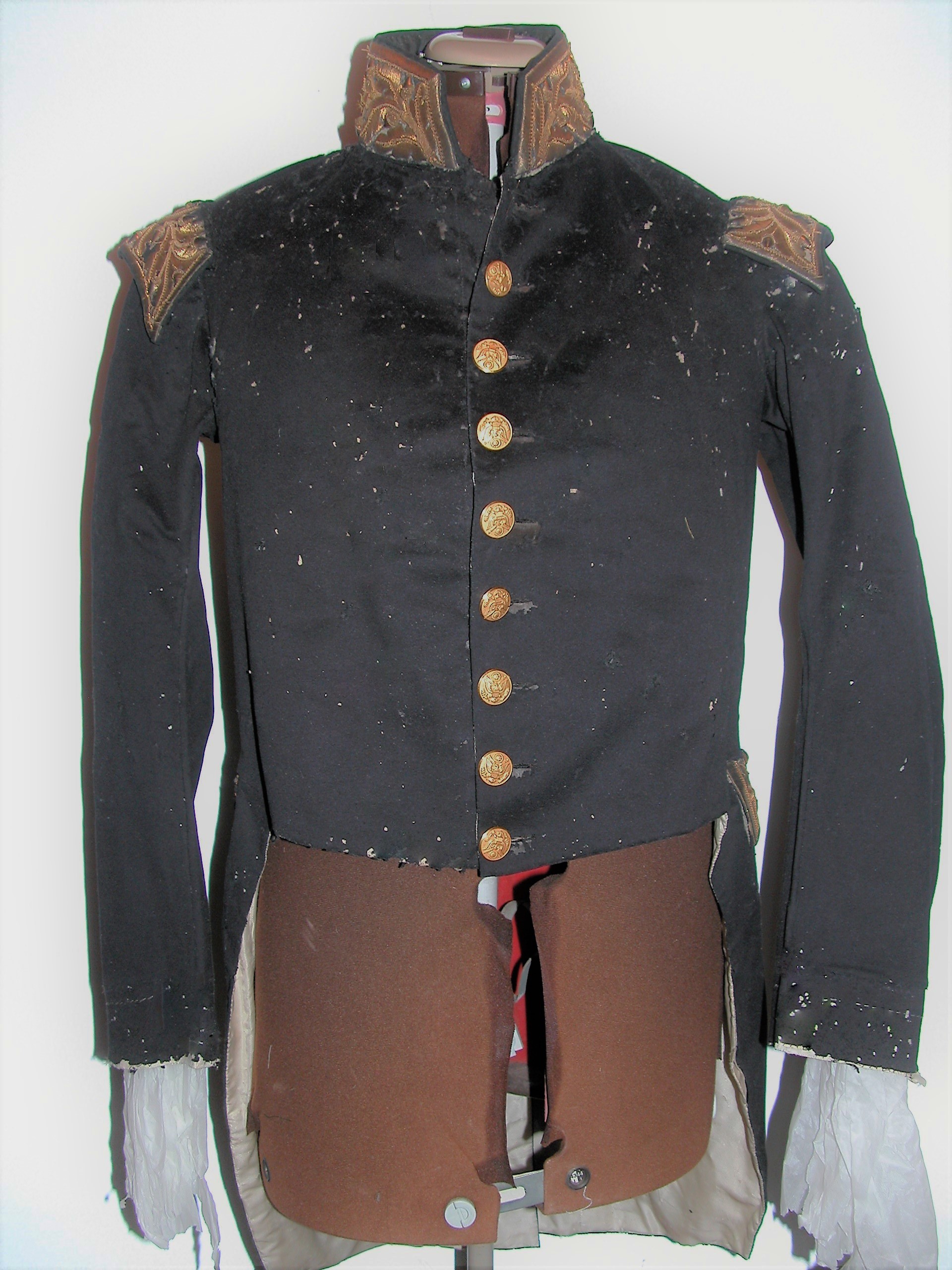 One of the first things we noticed in studying the coat is that the 1840s diplomat’s buttons were replaced with modern U.S. Army officer buttons. Where did the originals go? What did they look like? Henry’s research has come up with some clues that may help answer the question of where the coat was made, and what the buttons look like.