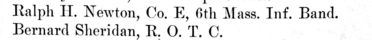Then, another discovery: In September 1917, the Dennison Round Robin published its Roll of Service, naming employees serving in the military. On page 7, we found Ralph H. Newton, Co. E, 6th Mass Infantry Band.